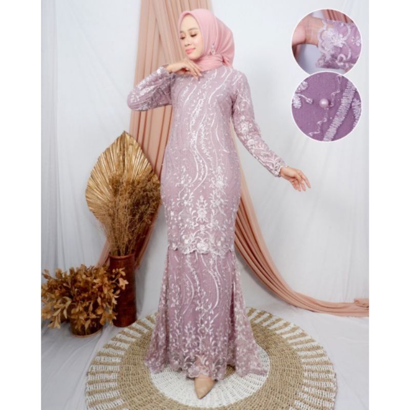 Baju pesta wanita muslim kondangan brukat mewah elegan gaun muslimah terbaru.